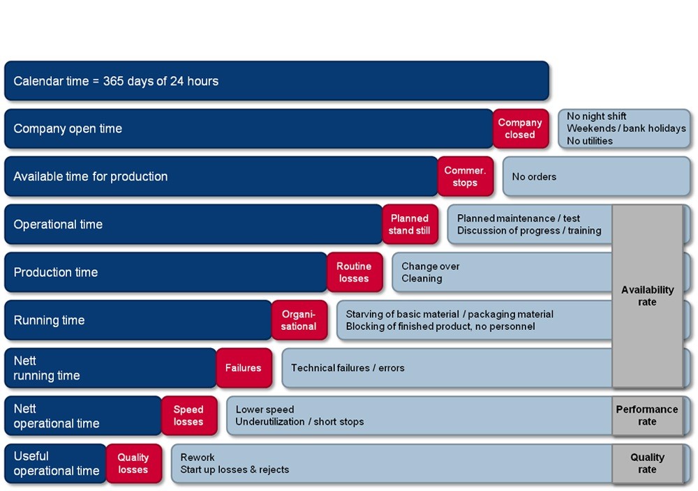 OEE é uma forma de monitorizar e melhorar a eficiência dos seus processos de manufatura, é o chamado "bestpractices"(melhores práticas), o conjunto de ações que definem a melhor forma de gerenciar uma fábrica. OEE é simples e prático, divide as mais comuns e importantes fontes de perdas da produtividade industrial em três categorias primárias, oferecendo assim um excelente marcador para visualizar a situação da planta e onde aplicar as melhorias.